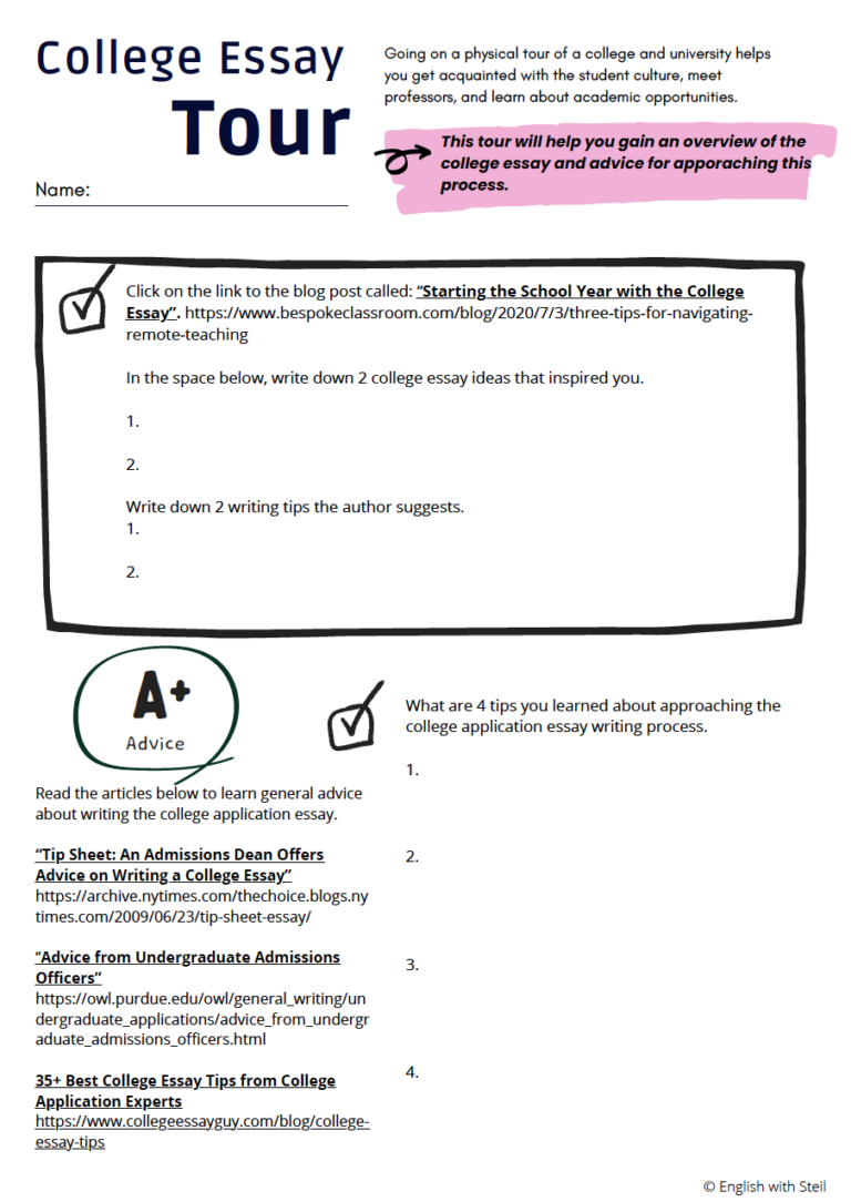 Before students ever start drafting, I like to walk them through real examples and talk about what college essays actually do well. Not as models to copy, but as opportunities to notice voice, structure, and reflection. I use a short “college essay tour” to guide that conversation, and it helps lower anxiety while giving students a clearer sense of what’s possible.